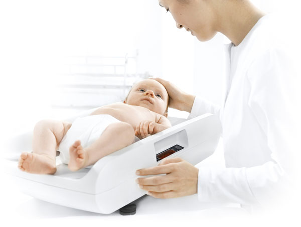 Die spezielle Dämpfung sorgt mittels HOLD-Funktion ein schnelles, präzises Wiegen, dies auch bei unruhigen Kindern. Die ergonomisch geformte Wiegemulde mit hohen, abgerundeten Seitenwänden ermöglicht das Wiegen auch von grösseren Säuglingen. Die grossen, leuchtenden LED-Ziffern ermöglichen ein angenehmes Ablesen der Daten. Der Betrieb kann mittels Netzanschluss oder Akku gewährleistet werden. Die zuverlässige Datenübertragung an den PC erledigt integrierte RS232-Schnittstelle.